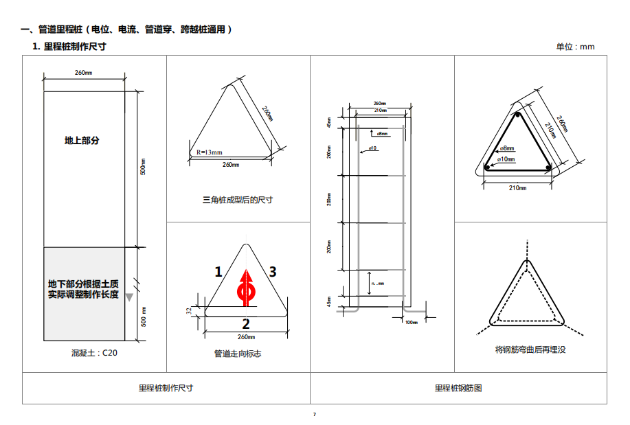 2. 管道里程樁、加密樁底座制作尺寸(根據地質情況設置)
